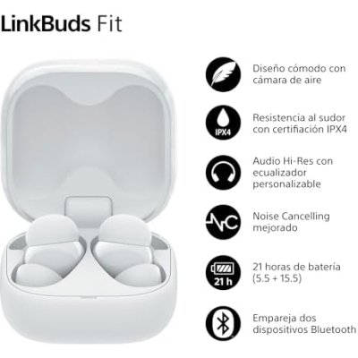 CALIDAD DE SONIDO EXCEPCIONAL: Con soporte Hi-Res Audio, reescalado de música y EQ personalizable para permitirte ajustar el sonido a tu gusto, los LinkBuds Fit ofrecen una calidad de sonido excepcional