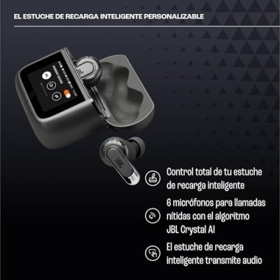 Estuche de carga práctico: dotado de una pantalla táctil, el estuche de carga te permite ajustar tus cascos sin pasar por la JBL app; benefíciate además de 50 horas de tiempo de reproducción