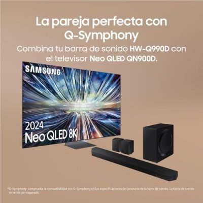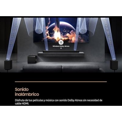 SONIDO ENVOLVENTE DE ALTA CALIDAD Y LLENO DE MATICES: Potencia la experiencia audiovisual con sus 3 altavoces verticales Dolby Atmos integrados, 810W de potencia omnidireccional. 9.1.5 canales: 5 altavoces frontales, 2 altavoces dobles traseros, 1 subwoofer, 5 altavoces verticales. Dolby Atmos y DTS:X, Hi-Res 24bits/96kHz.