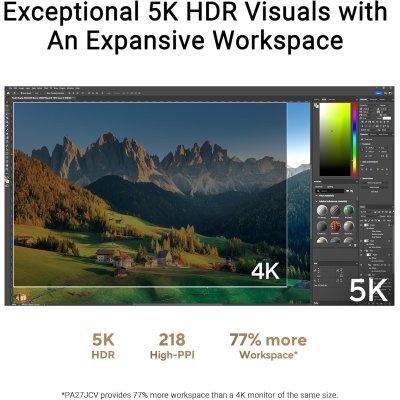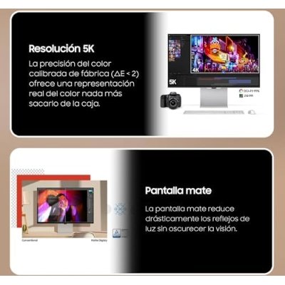 Resolución 5K: la resolución 5K proporciona más píxeles que 4K, lo que crea una pantalla más grande, con 218 PPI para detalles; la funcionalidad DCI-P3 al 99 % ofrece la saturación de color necesaria para que tus ideas cobren vida y la precisión del color calibrada de fábrica (ΔE < 2) te ofrece un color real desde el primer momento