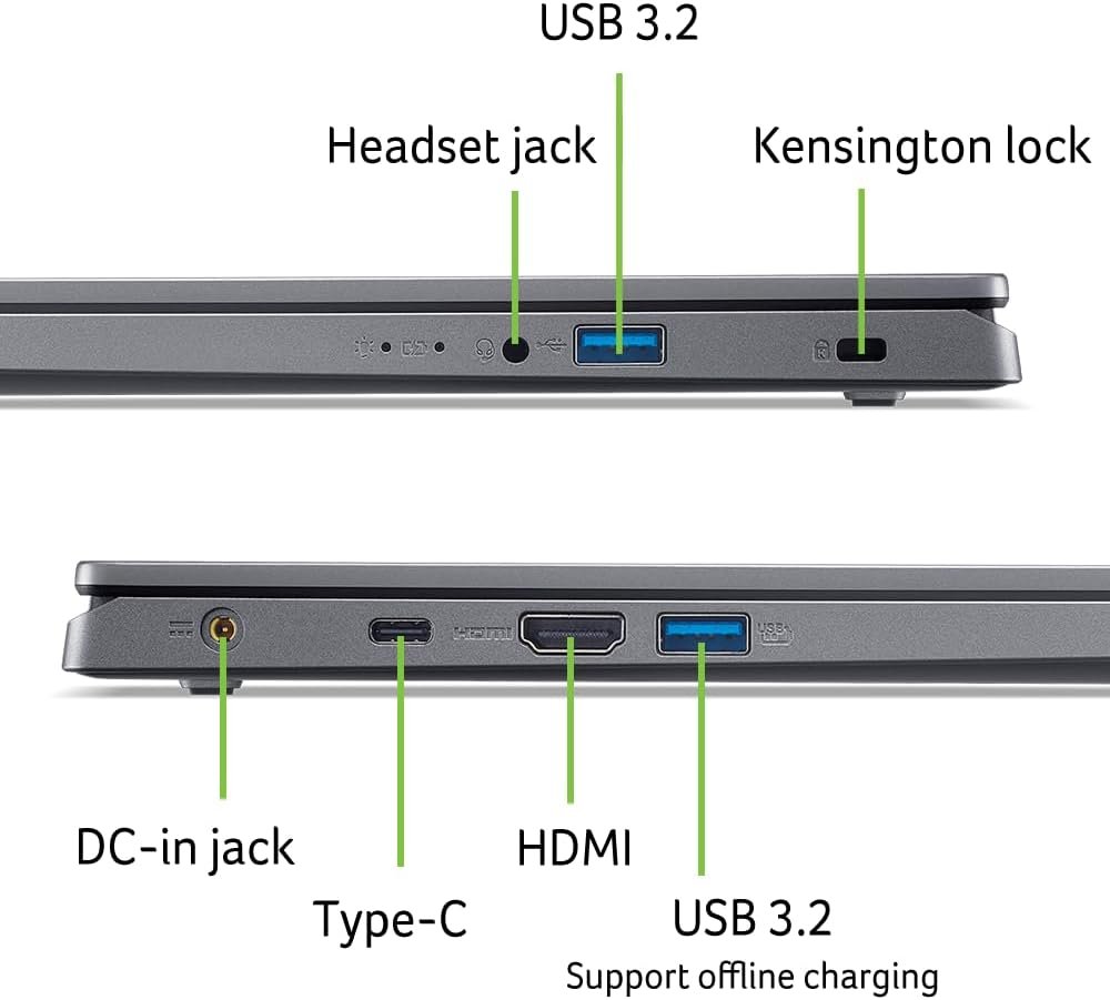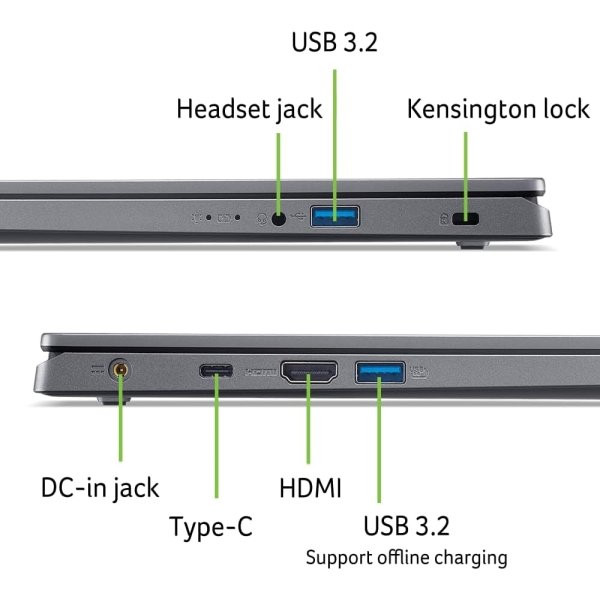 Claridad ultra cómoda: la pantalla Full HD de 15.6" 1080p con una relación de aspecto de 16:9 proporciona una visión nítida y detallada de lo que está frente a usted. Los biseles estrechos proporcionan una visión amplia, mientras que Acer BluelightShield protege tus ojos durante largas sesiones de trabajo o estudio.