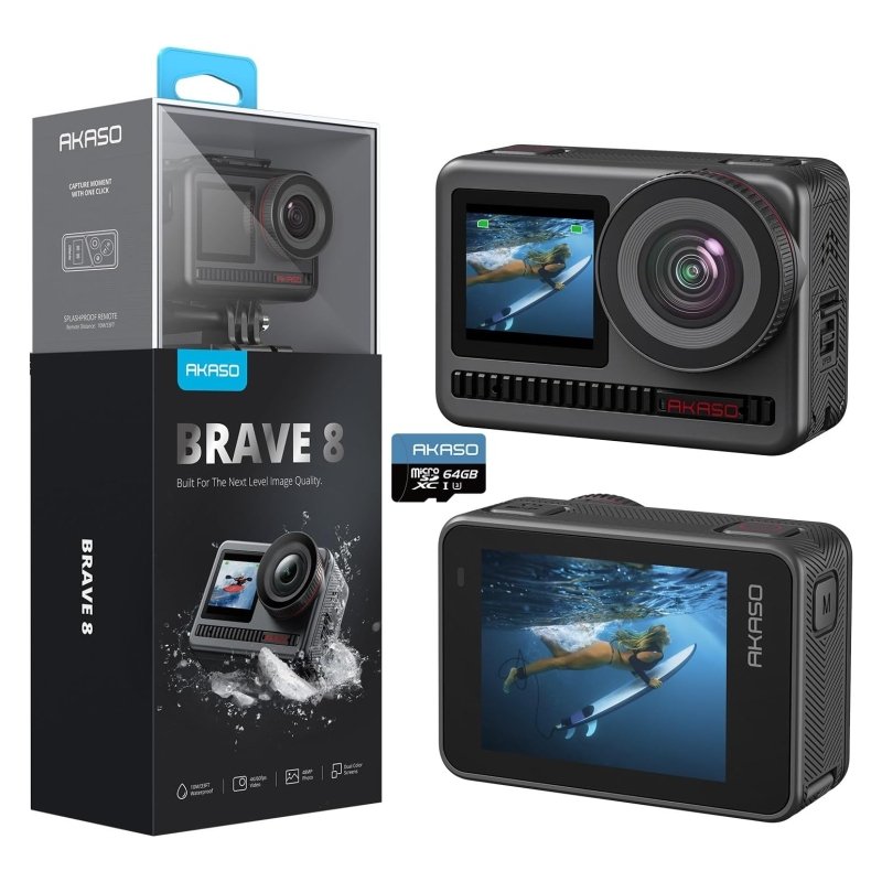 La AKASO Brave 8 es una cámara de acción de alto rendimiento capaz de capturar vídeo en una resolución máxima de 4K a 60 fps. Este modelo en color negro integra un sensor CMOS de 1/2 pulgada diseñado para generar fotografías con una resolución de 48 MP. Su estructura física es sumergible hasta una profundidad de 10 metros sin requerir el uso de una carcasa externa. Para la reducción de vibraciones, utiliza la tecnología de estabilización electrónica SuperSmooth procesada mediante algoritmos avanzados. El dispositivo funciona con una batería de 1550 mAh que proporciona una autonomía de grabación de hasta 90 minutos en condiciones estándar.