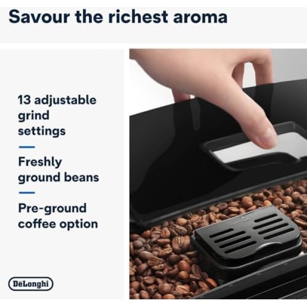 - SISTEMA TUBELESS de De'Longhi reduce la cantidad de polvo de café que queda en el molinillo por lo que solo se utiliza café recién molido