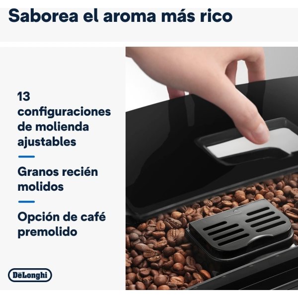 - CONTROL DE LA TEMPERATURA: El sistema Thermoblock de De'Longhi prepara el café a una temperatura óptima. Calienta el agua necesaria para cada bebida