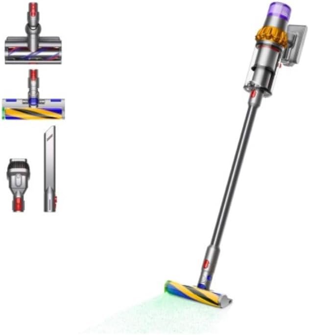 - 10 piezas: aspiradora Dyson V15, boquilla de suelo Slim Fuffy, boquilla para el pelo, boquilla para juntas, adaptador flexible, boquilla de suelo de la barra del motor, boquilla de accesorios combinada, soporte para accesorios para el tubo de aspiración, soporte de pared, cargador