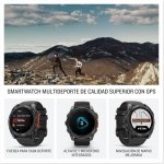 El Garmin fēnix 8 de 51 mm es un reloj inteligente multideporte que combina una carcasa de polímero reforzado con fibra y un bisel de titanio. Este modelo integra una pantalla táctil AMOLED de 1,4 pulgadas y cuenta con una resistencia al agua certificada de 10 ATM, permitiendo inmersiones recreativas de hasta 40 metros. El dispositivo incorpora sensores avanzados para la monitorización de la frecuencia cardíaca, saturación de oxígeno en sangre (SpO2) y temperatura cutánea. Su sistema de navegación utiliza tecnología GPS multibanda compatible con múltiples satélites, complementado con conectividad Bluetooth, Wi-Fi y ANT+. La autonomía de la batería ofrece hasta 29 días en modo reloj inteligente y se reduce a 13 días con la función de pantalla siempre encendida.