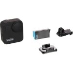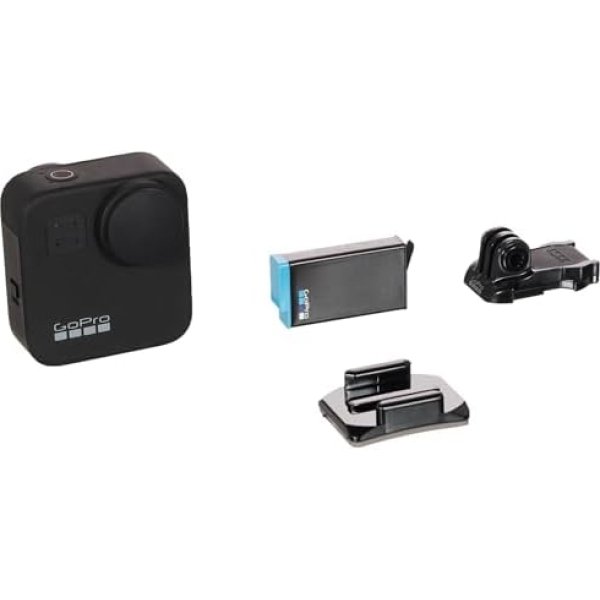 - Qué incluye Cámara GoPro MAX, Batería recargable, Soporte adhesivo curvo, 2 lentes protectoras, 2 tapas de lente, Bolsa de microfibra, Hebilla de montaje y tornillo, Cable USB-C, Estuche compacto