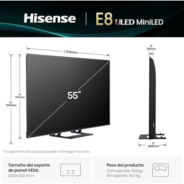 Hisense 55E8Q mini LED 144Hz smart TV Dolby Vision Atmos