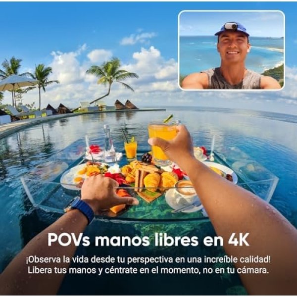 - POV 4K MANOS LIBRES - Un potente chip para imágenes de mayor calidad y un nuevo objetivo gran angular. Captura POVs manos libres en 4K con el nuevo MegaView FOV para imágenes enultra gran-angular con menor distorsión.
