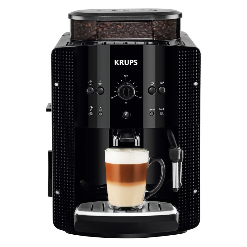 La Krups Roma Negro es una cafetera superautomática diseñada para la extracción de espresso mediante un sistema de molienda integrado. Este modelo opera con una bomba de presión de 15 bares y dispone de un depósito de agua extraíble con capacidad de 1,7 litros. El dispositivo utiliza exclusivamente café en grano, procesado por un molinillo cónico de metal con tres niveles de ajuste de textura. Incorpora un vaporizador lateral para la preparación manual de espuma de leche y permite configurar la temperatura y el volumen de la bebida. Sus funciones técnicas incluyen programas automáticos de limpieza y descalcificación, así como un sistema de calentamiento Thermoblock.