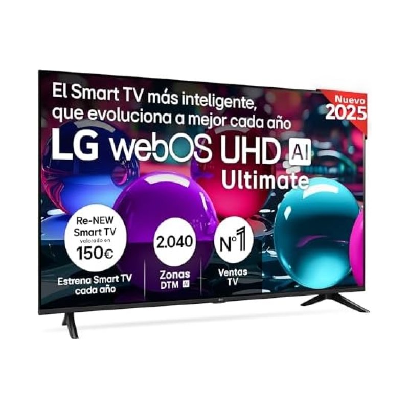 El televisor LG 50UA73006LA es un dispositivo de 50 pulgadas con resolución 4K Ultra HD que emplea tecnología de panel LED. Este equipo integra el sistema operativo webOS 25, proporcionando acceso a plataformas de contenidos y compatibilidad con Google Assistant. Su procesamiento de imagen se basa en un procesador α5 AI Processor 4K con soporte para formatos HDR10 Pro y HLG. En cuanto a conectividad, dispone de tres puertos HDMI y dos entradas USB, además de conexiones inalámbricas Wi-Fi y Bluetooth. El sistema de audio consta de una configuración de canales 2.0 con una potencia de salida de 20 W y tecnología de sonido AI.