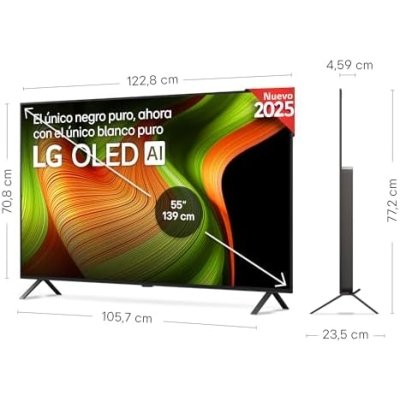 El LG OLED55CS4LA es un televisor de 55 pulgadas que integra una resolución 4K Ultra HD y tecnología de panel OLED evo. Este modelo incorpora el procesador α9 AI Gen7, diseñado para optimizar el procesamiento de imagen y sonido mediante algoritmos de inteligencia artificial. Ofrece compatibilidad con múltiples formatos de alto rango dinámico, incluyendo Dolby Vision, HDR10 y HLG. El sistema operativo webOS 24 gestiona la interfaz inteligente y el acceso a aplicaciones de contenido bajo demanda. La conectividad física se compone de cuatro puertos HDMI 2.1 y tres entradas USB para dispositivos periféricos. En el apartado inalámbrico, el dispositivo dispone de soporte para redes Wi-Fi y tecnología Bluetooth.