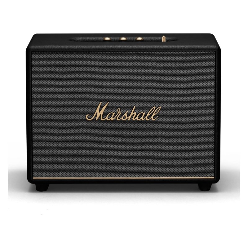 Marshall Woburn III es un sistema de altavoces de alto rendimiento diseñado para uso doméstico, con una potencia de salida de 150 W (RMS). Este modelo funciona exclusivamente mediante un adaptador de corriente con cable y no cuenta con batería integrada ni con funcionamiento inalámbrico autónomo. El sistema es compatible con Bluetooth 5.2 y no dispone de certificación IP de protección contra el agua y el polvo.Las conexiones adicionales incluyen entradas de 3,5 mm y RCA, así como un puerto HDMI ARC para la conexión a televisores. Las dimensiones del altavoz son 40,0 × 31,7 × 20,3 cm y su peso es de 7,45 kg. No incorpora micrófono integrado para llamadas ni para asistentes de voz.