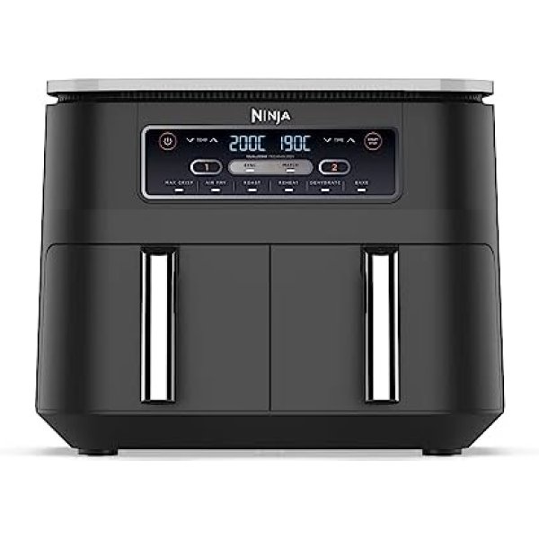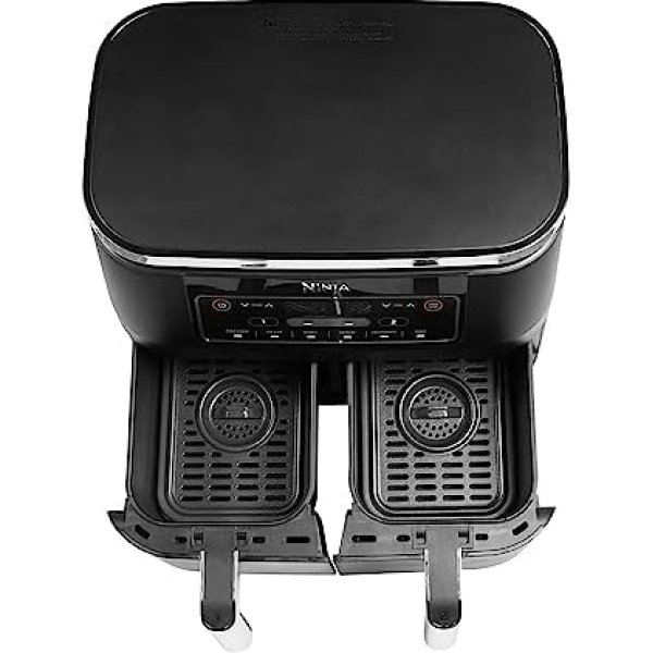 - INCLUYE: Freidora de aire Ninja Foodi con compartimento doble (enchufe UE), 2 cestas (capacidad total de 7,6 l) y rejillas base, antihaderentes y aptas para lavavajillas, y guía de recetas creadas por chefs. Color: Negro