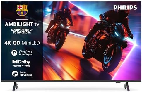 El televisor Philips 55MLED920 de la serie 'The Xtra' integra una pantalla de 55 pulgadas con resolución 4K Ultra HD. Este modelo utiliza tecnología de panel con retroiluminación Mini LED y ofrece una frecuencia de actualización nativa de 120 Hz. El dispositivo es compatible con múltiples formatos de alto rango dinámico, incluyendo Dolby Vision, HDR10+ y HLG. El sistema operativo Philips Smart TV gestiona la interfaz, mientras que el procesamiento de imagen corre a cargo del motor P5 Perfect Picture Engine. La conectividad se completa con cuatro puertos HDMI, compatibilidad con sonido Dolby Atmos y opciones inalámbricas mediante Wi-Fi y Bluetooth.