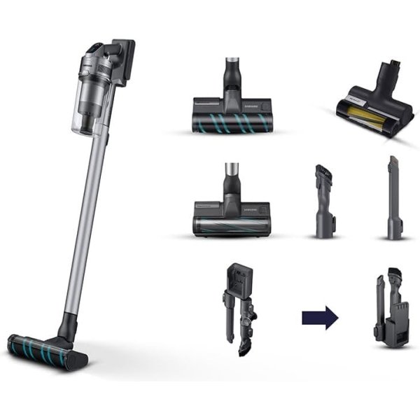 - Aspirador inalámbrico SAMSUNG Jet 75E Complete, con una potencia de 200 W, hasta 60 minutos de autonomía, ligero y fácil de manejar