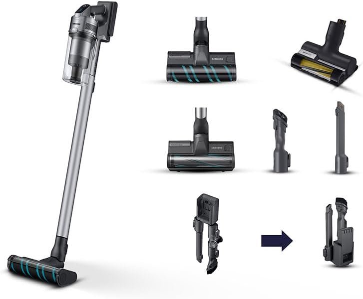 - Aspirador inalámbrico SAMSUNG Jet 75E Complete, con una potencia de 200 W, hasta 60 minutos de autonomía, ligero y fácil de manejar