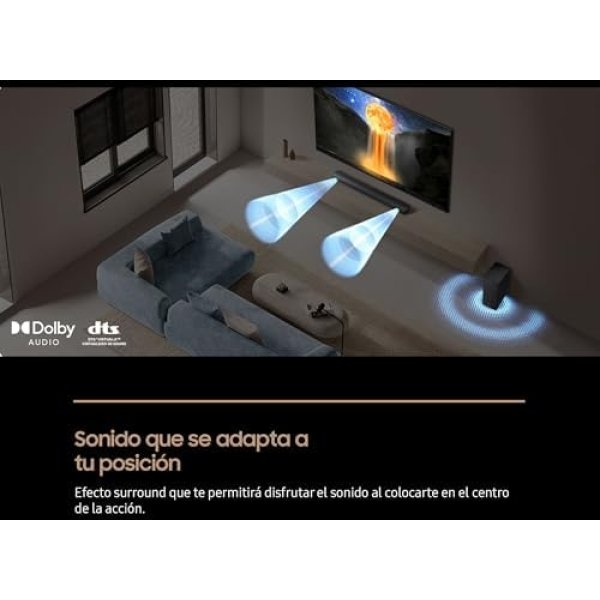 Disfruta de un sonido envolvente completo de 3,1 canales con un altavoz central integrado que ofrece diálogos más claros mediante la amplificación del audio de voz.