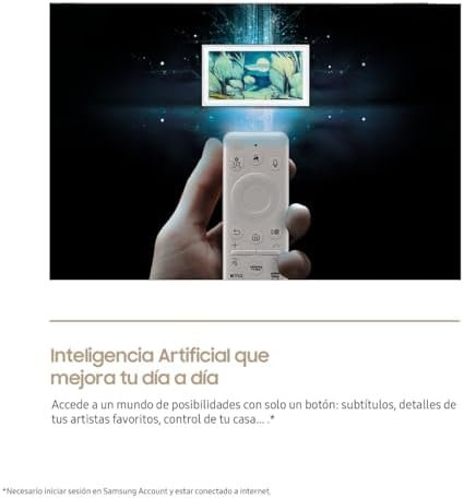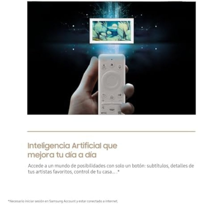 El televisor Samsung The Frame LS03F de 50 pulgadas integra un panel con tecnología QLED y una resolución nativa 4K Ultra HD. Este modelo ofrece soporte para formatos de alto rango dinámico, incluyendo HDR10+ Adaptive y HLG, gestionados por el procesador NQ4 AI Gen2. Utiliza el sistema operativo Tizen, el cual proporciona acceso a diversas aplicaciones de streaming y funciones de hogar inteligente. En cuanto a conectividad, dispone de cuatro puertos HDMI y dos entradas USB, además de conexiones inalámbricas mediante Wi-Fi y Bluetooth 5.3. Su pantalla cuenta con un acabado mate diseñado para minimizar reflejos y facilitar la visualización de contenido en el modo Art Mode.