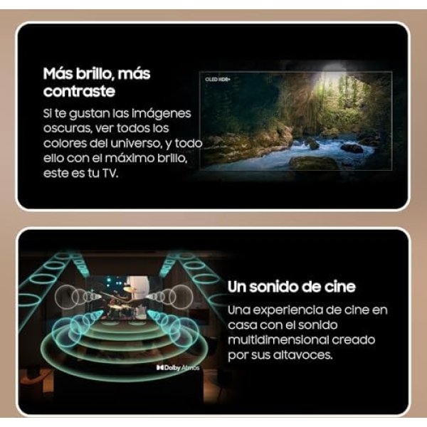 - Un sonido de cine: Una experiencia de cine en casa con el sonido multidimensional creado por sus altavoces. Con Dolby Atmos, Q-Symphony y OTS Lite.