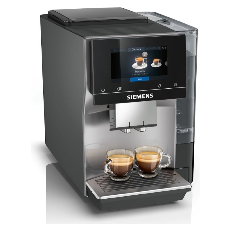La Siemens EQ700 es una cafetera superautomática diseñada para procesar café en grano y café molido mediante un sistema de molienda integrado. Este modelo cuenta con una bomba de presión de 19 bares y un depósito de agua extraíble con capacidad de 2,4 litros. Incorpora una pantalla iSelect de 5 pulgadas que permite la navegación táctil entre las diferentes opciones de configuración y programas. El sistema de leche automático facilita la preparación de bebidas combinadas, mientras que el molinillo cerámico ceramDrive asegura una molienda uniforme. Incluye funciones de personalización de intensidad y volumen, además de conectividad inalámbrica a través de la aplicación Home Connect. El equipo integra programas automáticos de limpieza y descalcificación para el mantenimiento del sistema interno y el conducto de leche.