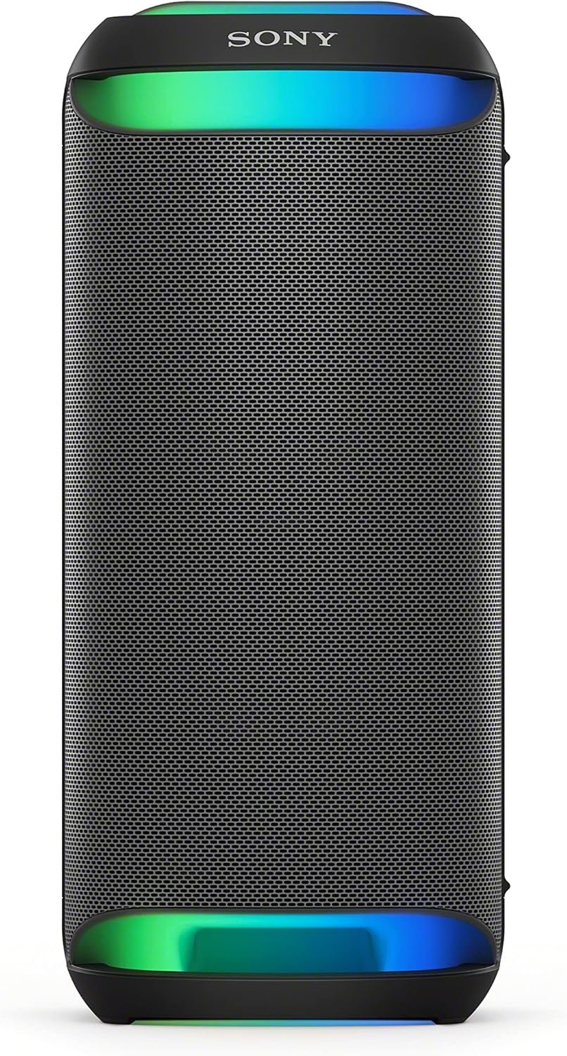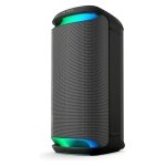 El Sony SRS-XV800 es un sistema de altavoz inalámbrico diseñado para eventos y uso doméstico de alto rendimiento. Presenta un acabado en color negro y utiliza tecnología Bluetooth 5.2 para la conexión con dispositivos móviles. El equipo proporciona una autonomía de batería de hasta 25 horas e incluye un sistema de carga mediante cable de CA con función de carga rápida. Su diseño cuenta con una clasificación de resistencia IPX4 cuando se utiliza verticalmente para protección contra salpicaduras. Integra diversas opciones de conectividad física, incluyendo entradas para micrófono, guitarra y conexión óptica digital. Con un peso de 18,5 kg, el dispositivo incorpora ruedas y asas para mejorar su movilidad en diferentes superficies.