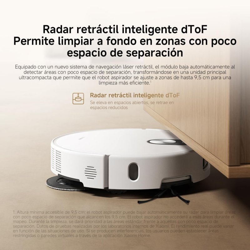La Xiaomi Robot Vacuum 5 es una aspiradora de tipo robot con un acabado en color —. Este dispositivo cuenta con una potencia de succión de 2000 Pa y un sistema de filtración con filtro lavable. El equipo incluye un depósito de polvo con capacidad de 0,4 litros y una batería de 2600 mAh. Su autonomía de funcionamiento alcanza los 110 minutos en condiciones de uso estándar. La unidad integra sensores de proximidad y anticaída para la navegación en interiores. El control del aparato se gestiona mediante la aplicación Xiaomi Home a través de conexión Wi-Fi.